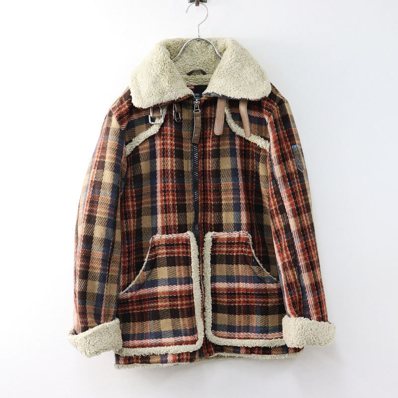 - ディーゼル DIESEL 裏ボア チェックジップアップブルゾン ジャケット S ブラウン系┃秋冬 上着 アウター ランチコート【2400014592436】