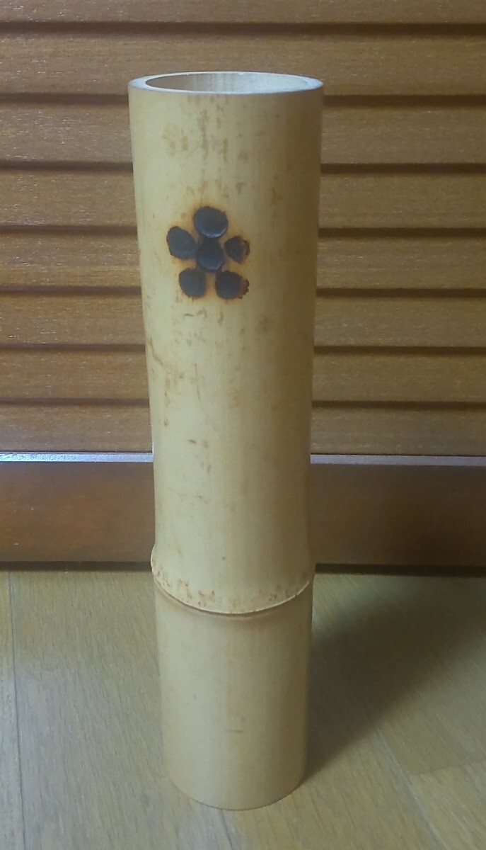- 竹 花入 北野天満宮 梅鉢紋 焼印 萬灯祭 / 白竹 竹 花入 菅原道真 表千家 裏千家 武者小路 久田 茶道具