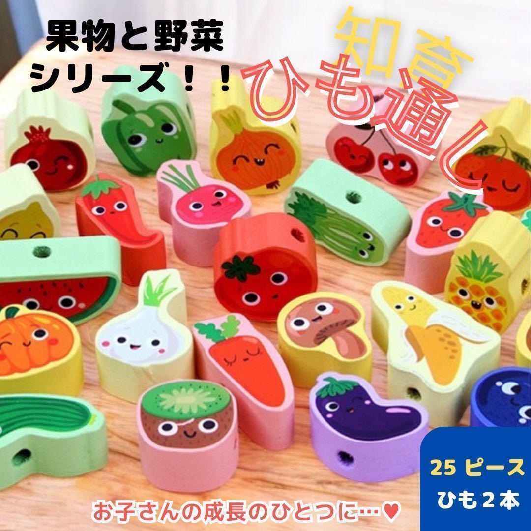 - 知育玩具 ひも通し 果物 野菜 モンテッソーリ 指先遊び おままごと 集中力