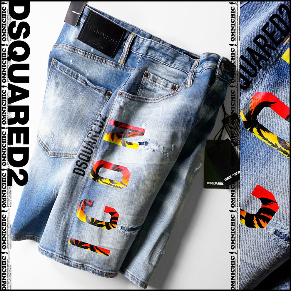 - 人気のICONロゴ!■新品【DSQUARED2】ディースクエアード/インパクト抜群エイジング加工/BOXERSHORT/ボクサーショートデニムハーフパンツ48
