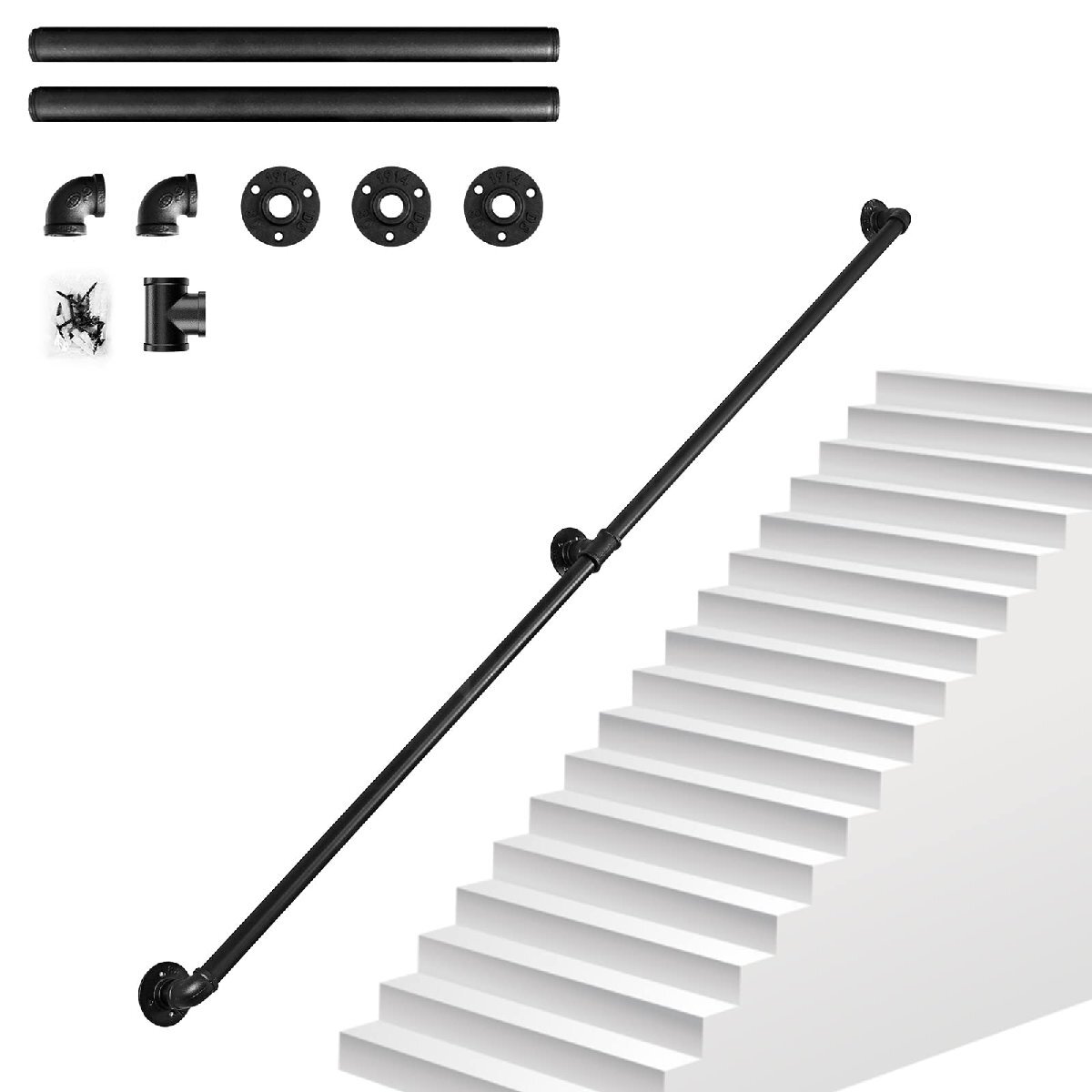【在庫限りです】【在庫品のみ】HARUMAKI階段屋外用の手すり階段階段屋内黒い工業用パイプ錬鉄製手すり1-3m