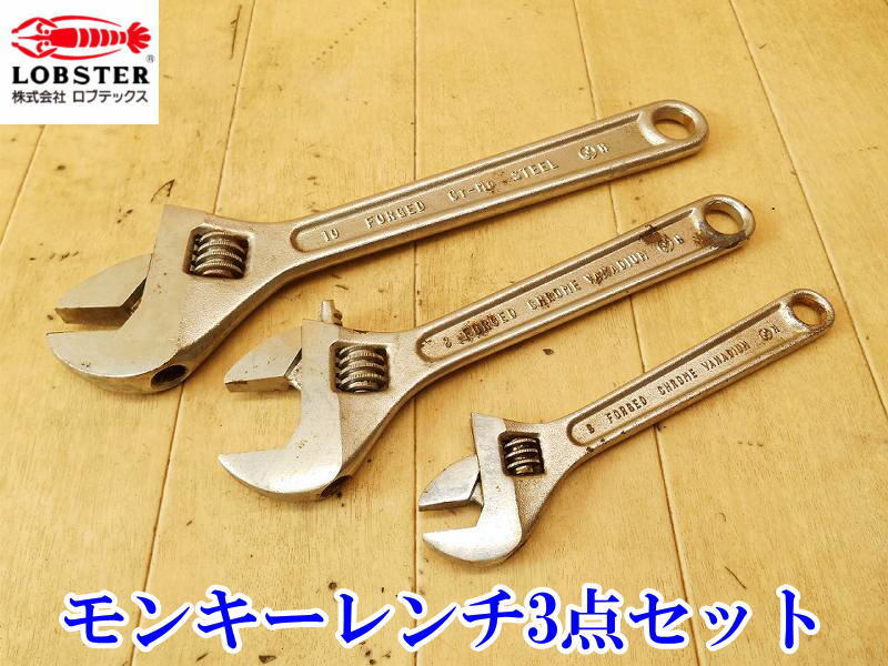> 〇 ロブスター LOBSTER モンキーレンチ 3点セット レンチ エビ 250mm 200mm 150mm 工具 道具 スパナ ボルト ナット 締め 緩め 配管 水道