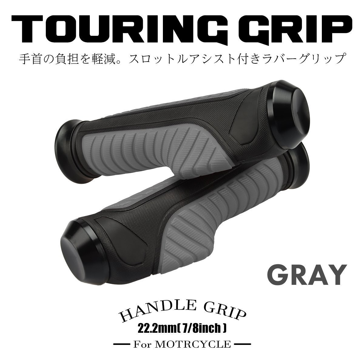 - バイク グリップ スロットルアシスト グリップ ツーリングなどに 汎用 左右セット 22.2mmハンドル用 グレー SZ571-GY