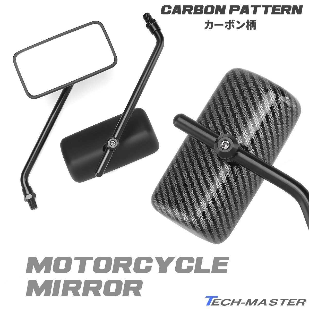 - 汎用 AZタイプ 角型ミラー 左右セット M10正ネジ/逆ネジ M8正ネジ ハンドルクランプタイプ対応 カーボン柄 SZ651-C