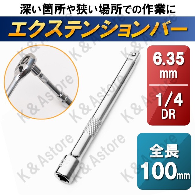 - エクステンションバー 延長バー ジョイントバー 延長棒 差込角 1/4インチ 1/4 1/4sq 1/4DR 6.35mm 6.35sq 6.35DR 全長100mm 単品販売