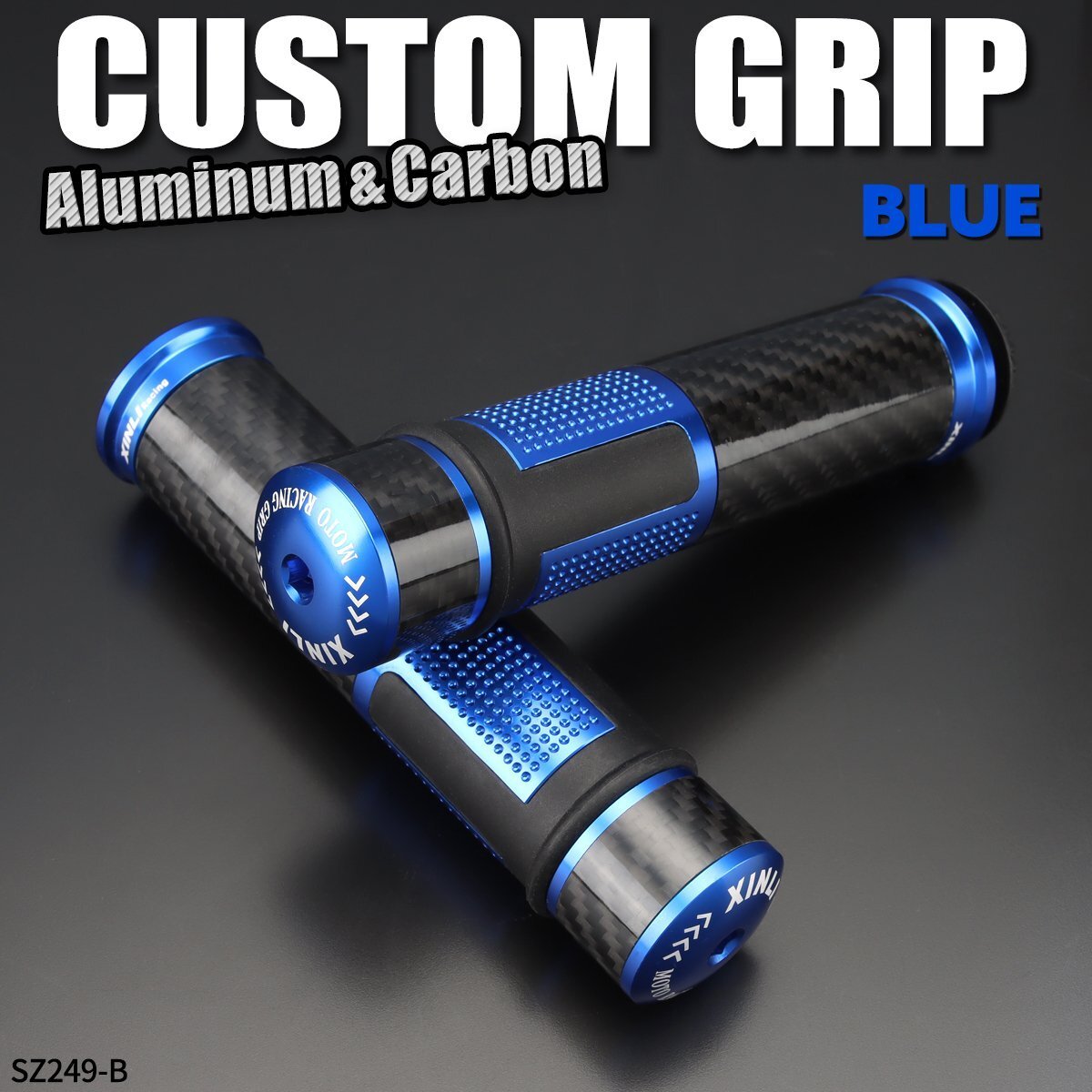 > バイク グリップ カーボン×アルミ カスタムグリップ 左右セット バーエンド付き Φ22.2mmハンドル用 ブルー SZ249-B