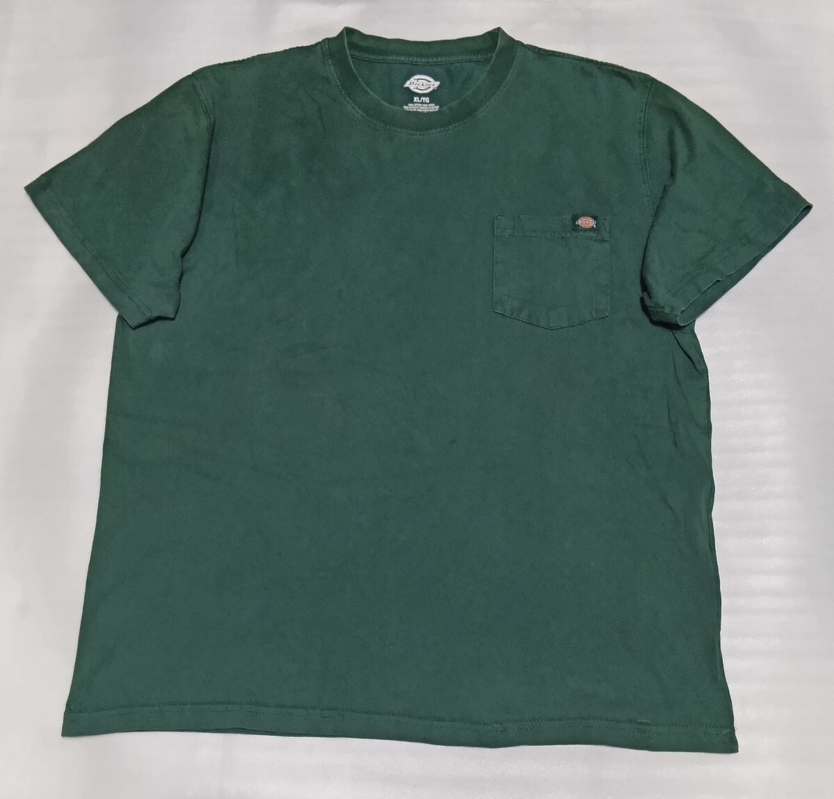 > ☆Dickies サイズXL 半袖Tシャツ グリーン緑色TEE胸ポケット洗濯済ワーク カジュアル スタイル ファッション ブランド ディッキーズ ティー