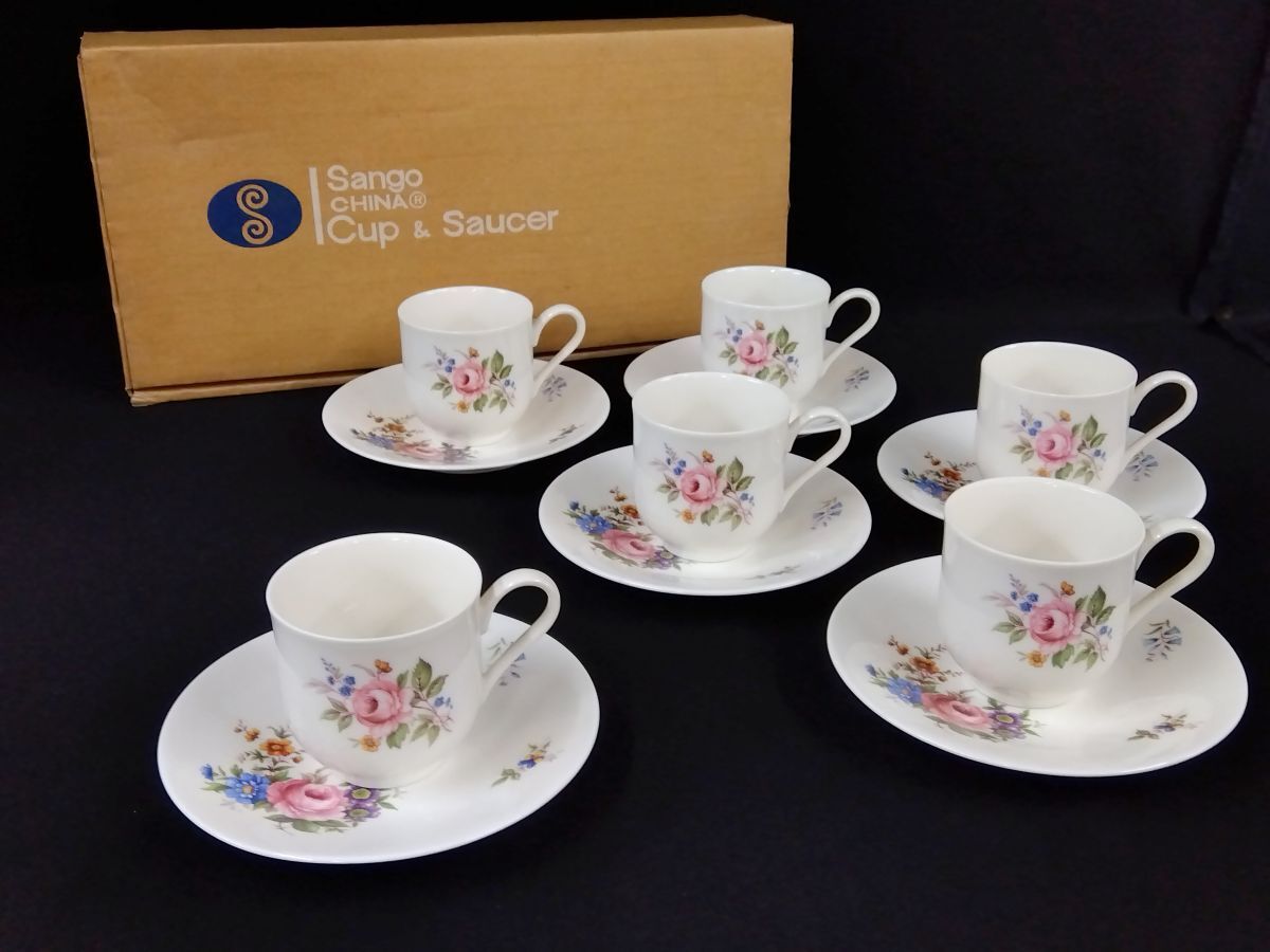 - V023 Sango CHINA サンゴー 花柄 カップ&ソーサー レトロ/100