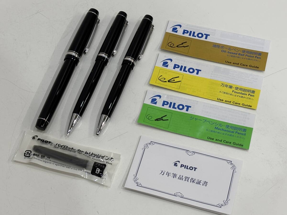 > ■未使用/美品■3本セット PILOT CUSTOM HERITAGE 91 パイロット カスタム ヘリテイジ 万年筆 ペン先14K-585 ボールペン シャープペン 黒