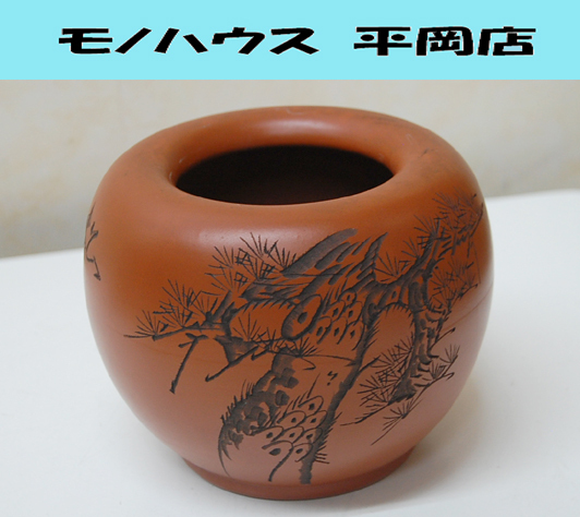 常滑焼 陶幸 建水 直径15×高12cm 朱泥 翠手子樹松 松 木 こぼし 煎茶道具 茶道具 茶器 食器 札幌市