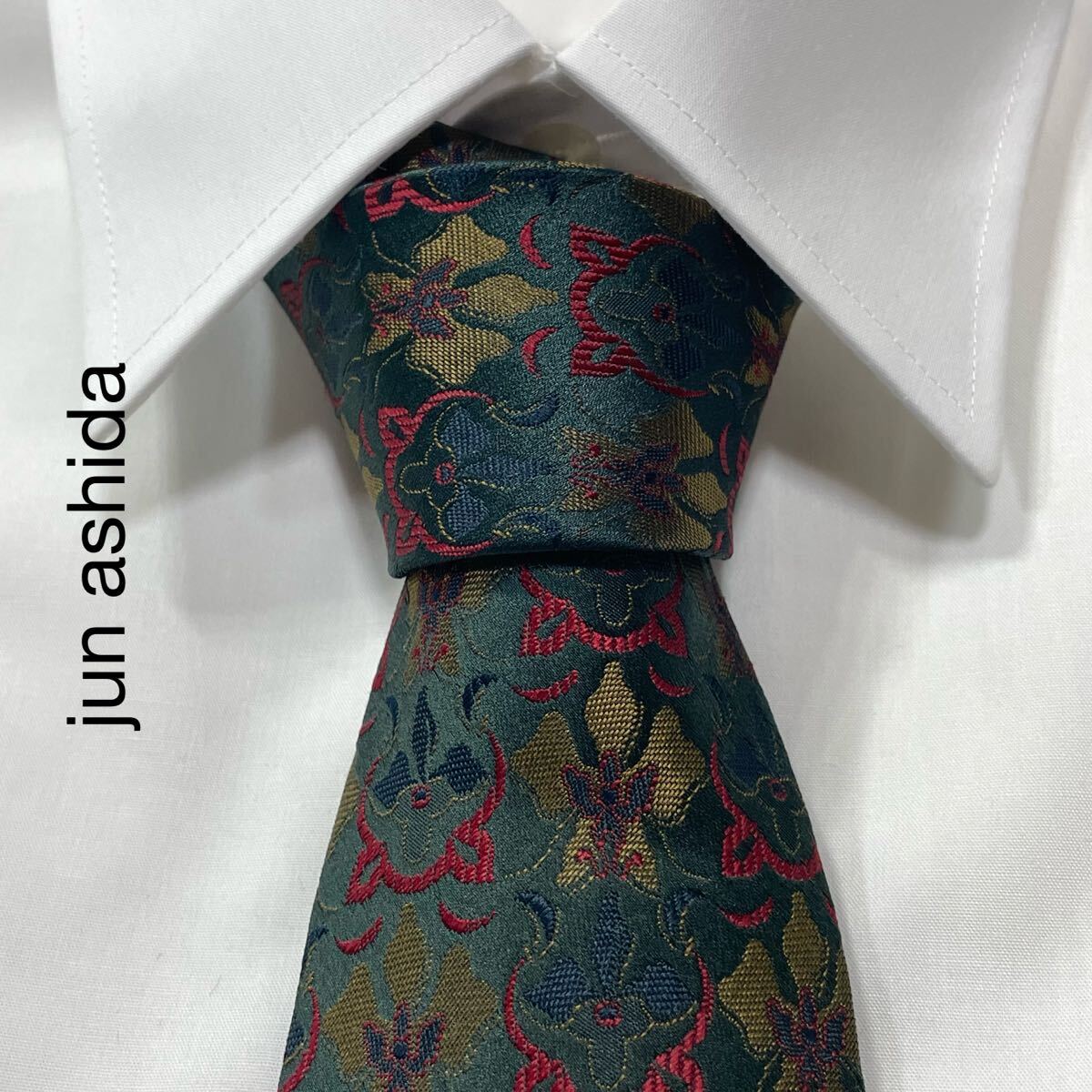- jun ashida ジュンアシダ アート パターン柄 ジャガード シルク ネクタイ グリーン TG2838