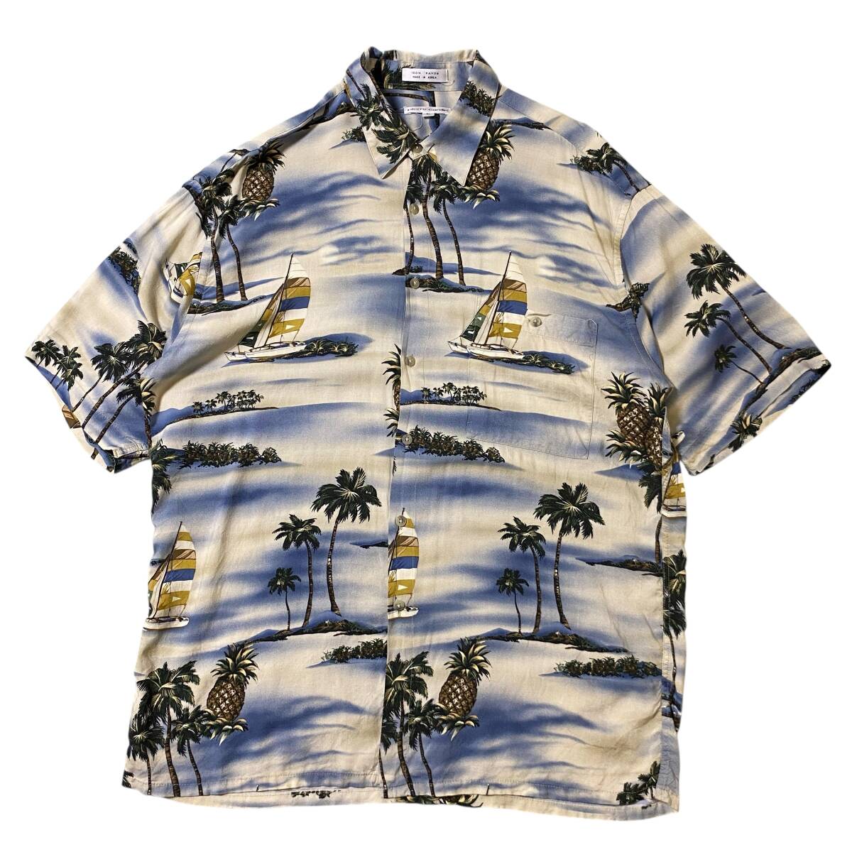 - アメリカ古着 ピエールカルダン アロハシャツ ヨット パイナップル ハワイアン レーヨン Lサイズ 【AL349】