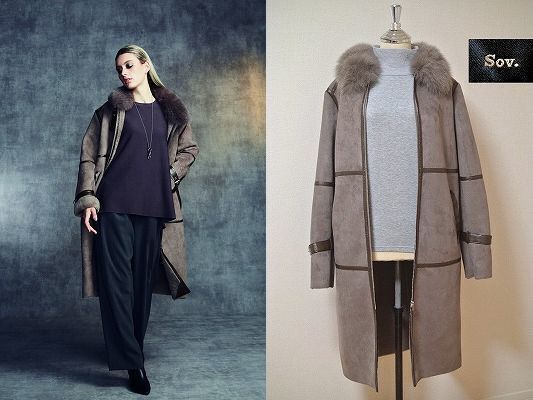 > ●美品!DOUBLE STANDARD CLOTHING【ダブルスタンダードクロージング】FOXファー付きフェイクムートンコート♪定価44,000円+税