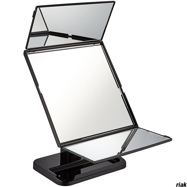 - 【縦置き・横置きどちらにも対応できる回転式三面鏡】 三面鏡 回転式 卓上ミラー メイク ヘアセット 鏡 コンパクト 折りたたみ ブラック