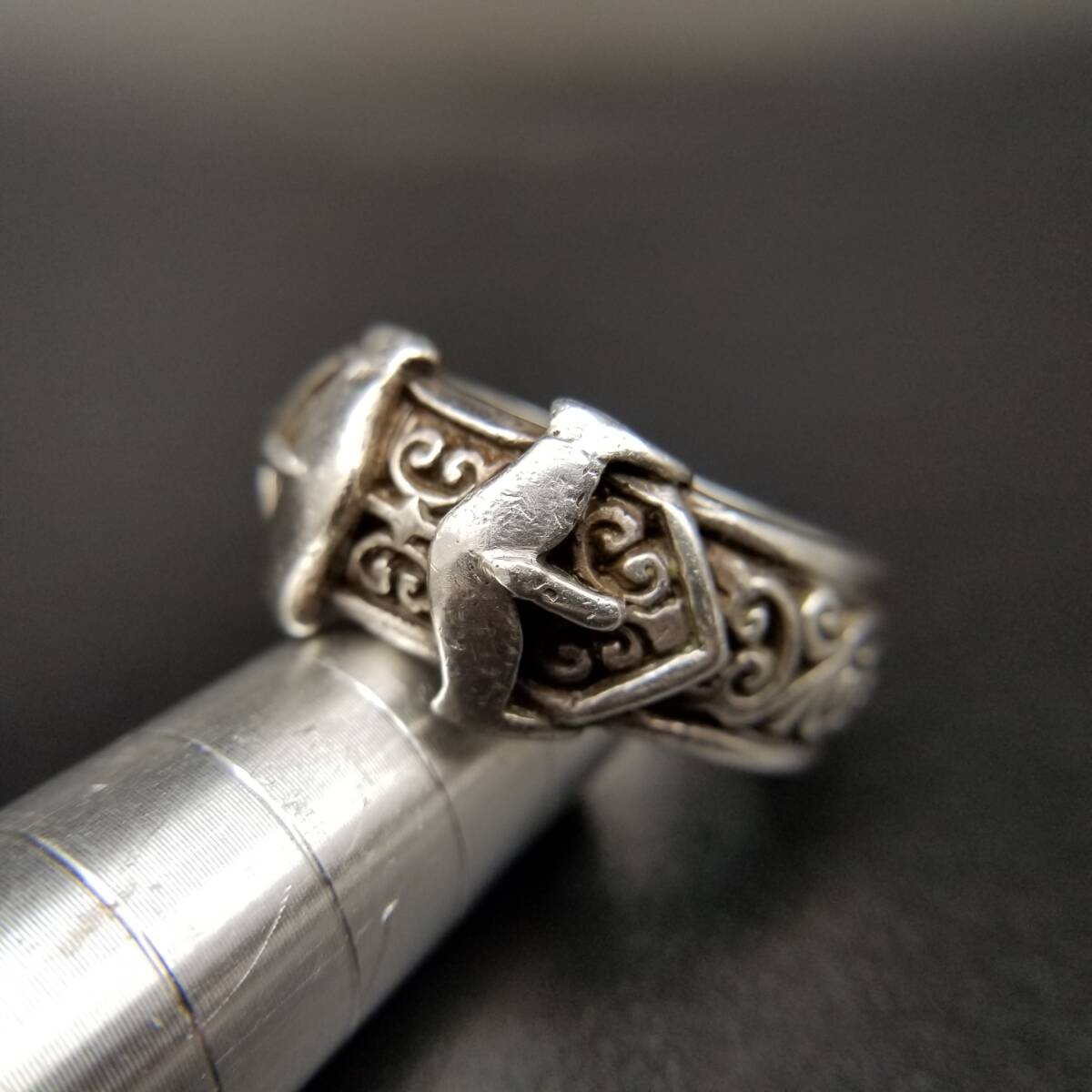 > 1987年 英国 ヴィンテージ ベルトデザイン 植物パターン バンド リング 925 シルバー 銀 指輪 幅広 London ホールマーク 重厚感 Y24-L