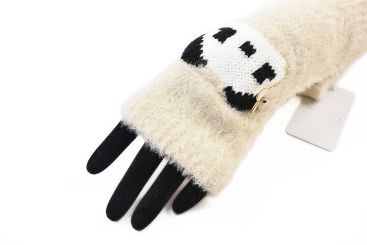 - 手袋 レディース アンテプリマ ブランド 指なし ピクセル パンダ フィオーリ モチーフ 白 アイボリー フィンガーレス