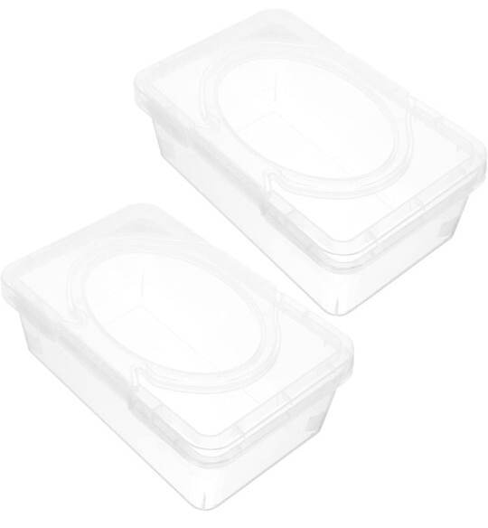 > ▲2個赤ちゃん用おしりふき収納ボックス 蓋付きウェットワイプディスペンサー クイックルワイパー対応 防塵設計 横19.5×縦12.5×高さ10cm