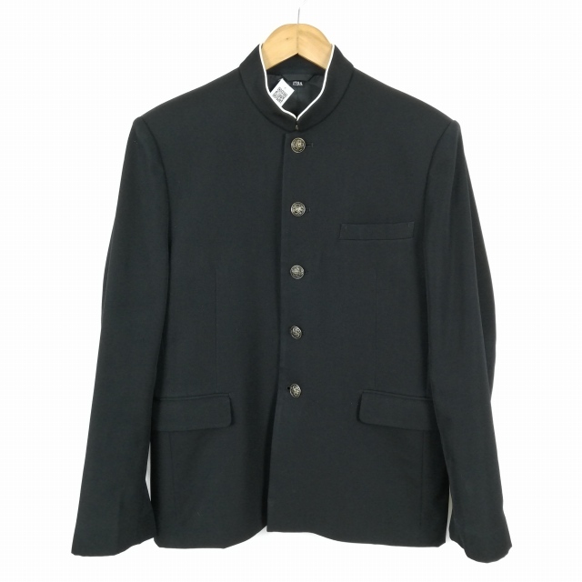 - 学生服 学ラン 170A 男子 上着 ウール混 ラウンドカラー カシドス 黒 中古 ランクC a3 JJ6304