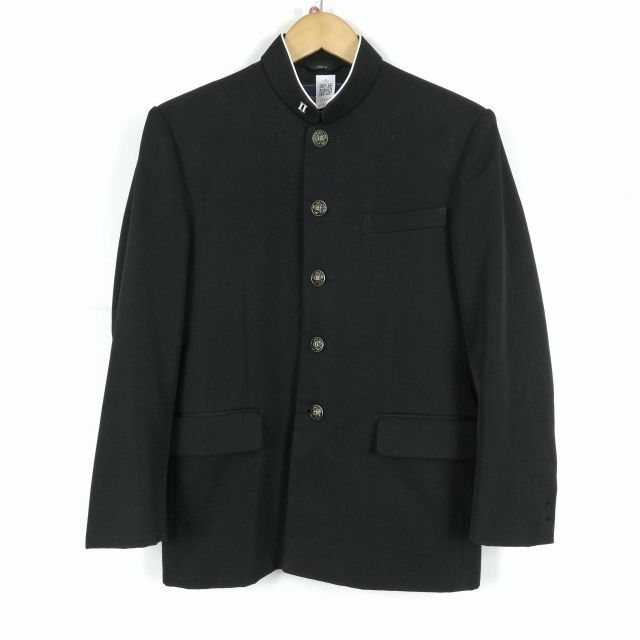 - 学生服 学ラン 160A 男子 上着 ウール混 ラウンドカラー カシドス 黒 中古 ランクC a3 JJ5662