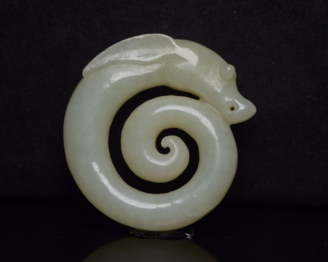 - 『館蔵珍品 和田玉製 細密彫 玉龍 置物 賞物』稀少珍蔵品 古賞物 貴重物品 収蔵品 中国古美術 時代物 古董品