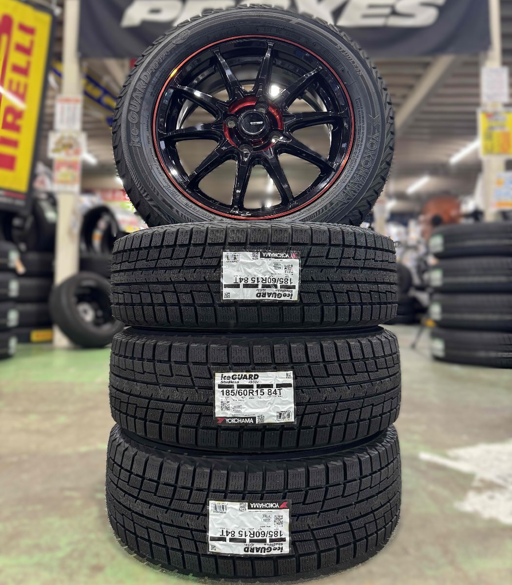 - アクア ヤリス ヴィッツ フィット [新品スタッドレス] 185/60R15 ヨコハマ アイスガード 2023年製 + [中古] 社外 15インチ 4本セット!