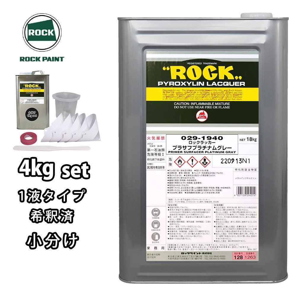 - ロックラッカープラサフプラチナムグレー 1液型 4kg(希釈済み) 道具セット付/ロックペイント プラサフ プラチナムグレー 塗料 Z26
