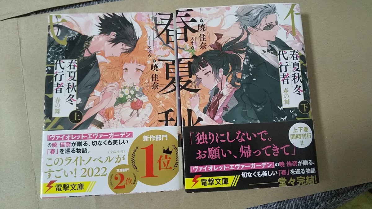 - 2冊セット 春夏秋冬代行者 春の舞 上下 スオウ 暁 佳奈 ピンナップ カバー少し折れあり、少し汚れあり