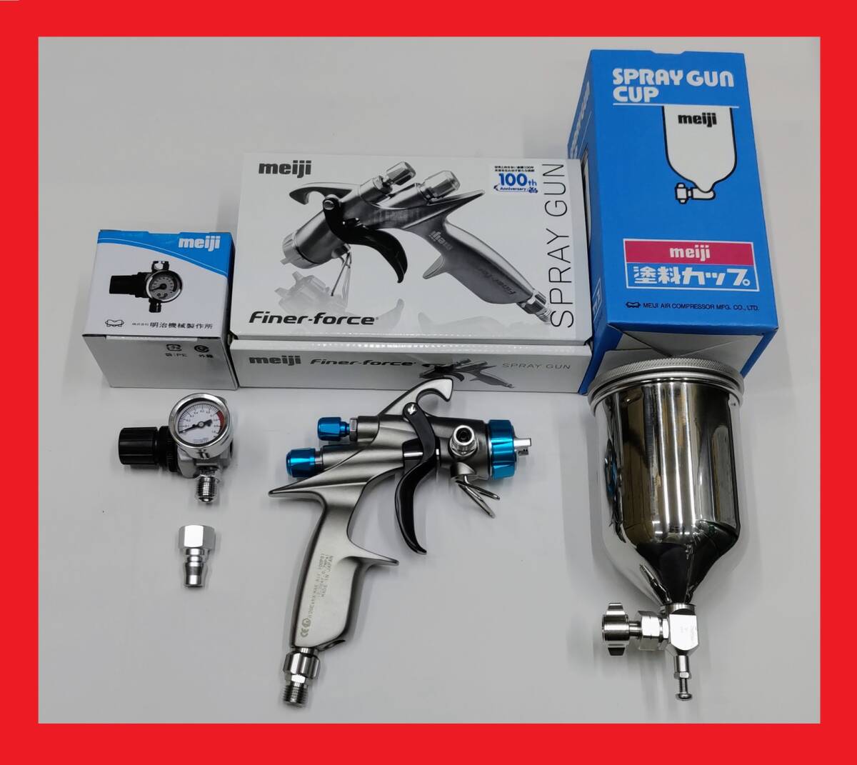 - 明治スプレーガン3点セット+カプラ付 FINER FORCE T、カップ4GF-U、手元圧力計MAR◆ファイナーフォースT