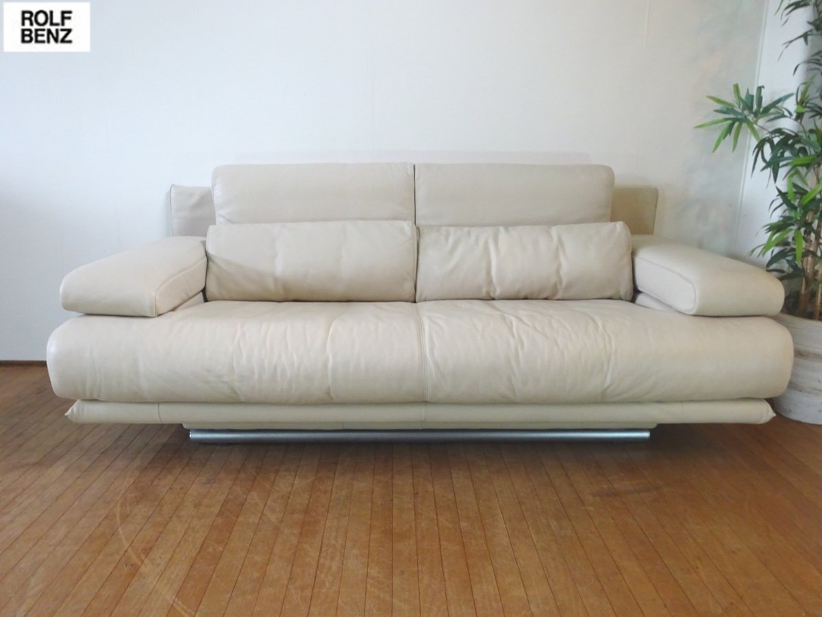 - osk070906 【美品】 IDC大塚家具 ドイツ 高級 2人掛けソファ (ROLF BENZ/ロルフベンツ 6500/182) 本革 アイボリー色