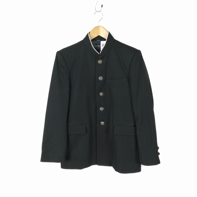- 学生服 学ラン 155A 男子 上着 ウール混 ラウンドカラー カシドス 黒 中古 ランクB a3 JJ6374