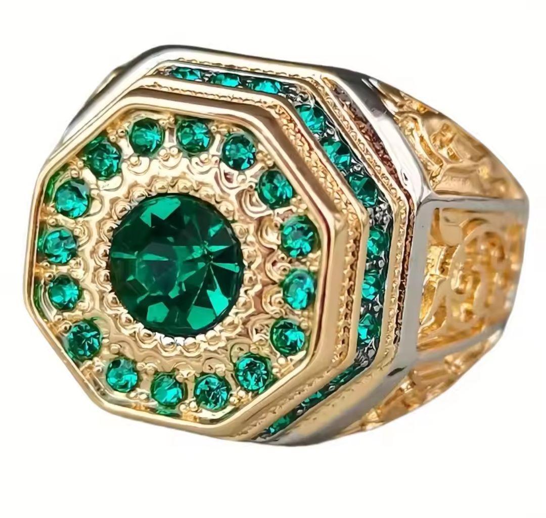 - エメラルドグリーン 八角形リング 10サイズ