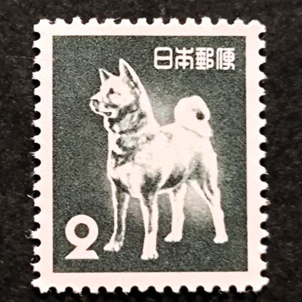 > [25090616] 普通切手【第2次動植物・第1次円単位】単片「旧 犬・秋田犬」2円 1953年発行 美品