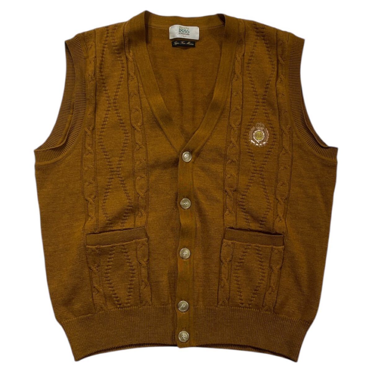 - 送料無料 ■ Munsingwear マンシングウェア ■ エンブレム ロゴ 刺繍 ウール ニット ゴルフ ベスト ブラウン L