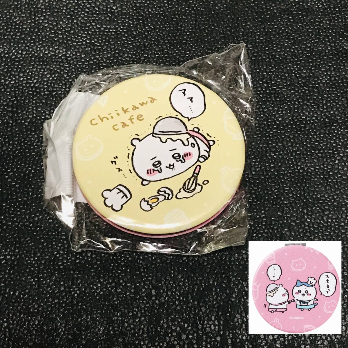 - ハチワレ ちいかわ 初期グッズ カフェ 丸型 コンパクトミラー 手鏡 店員さん コックさん レストラン 飯店 ちいかわらんど ナガノ くじ