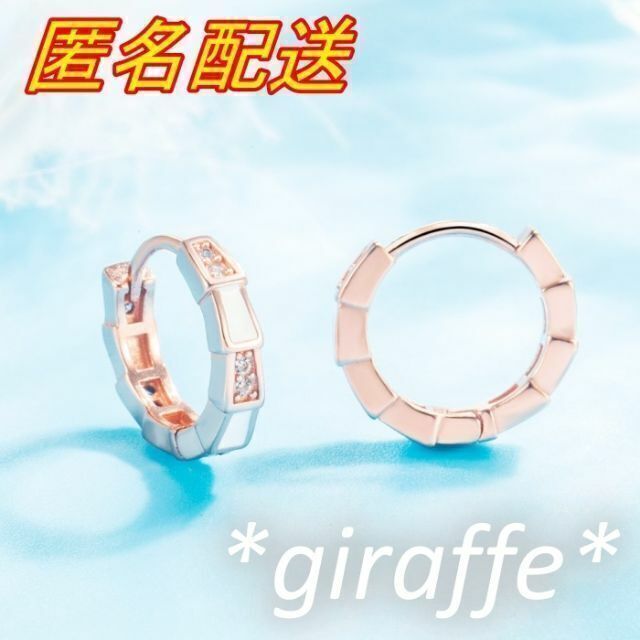 > B288 匿名配送 リングピアス ジルコニア シェル レディース フープピアス ローズゴールド s925 刻印あり シンプル 可愛い