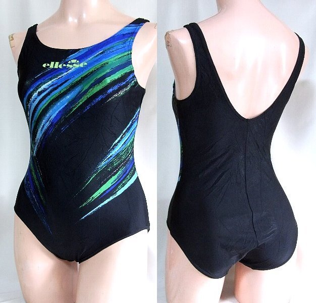 - ★☆ellesse ブルーグリーン斜め柄入り黒スポーツ水着☆★