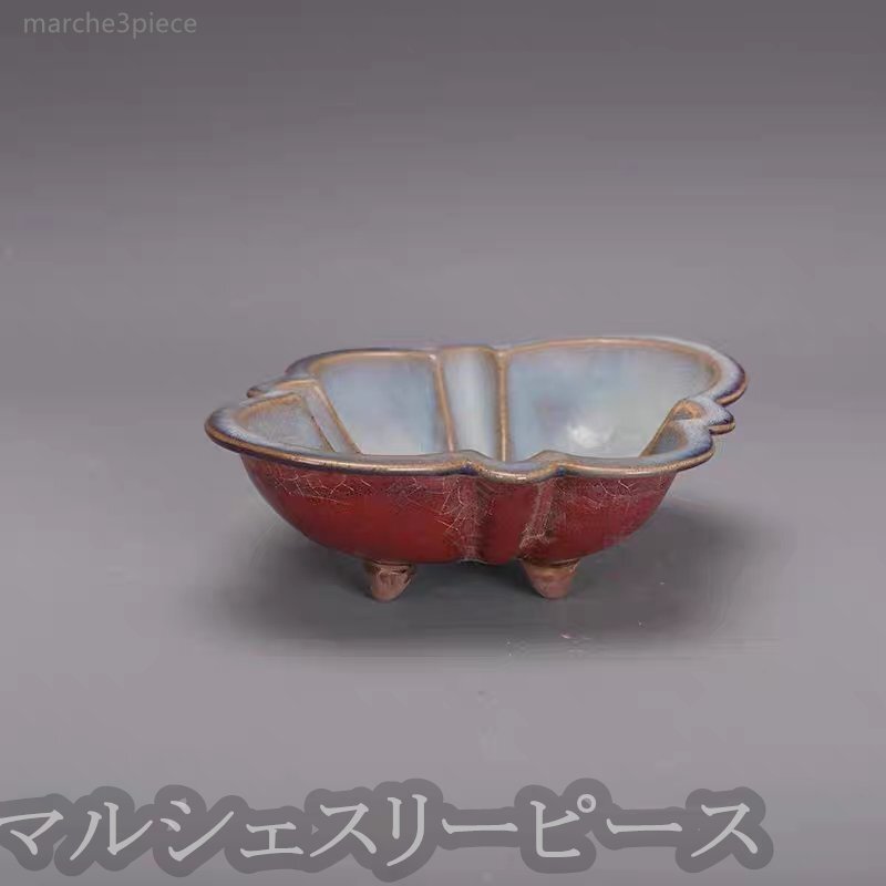 - 四足花口磁器 五大名窯鈞 鈞磁器 宋 赤釉 花口 高足 賞皿置物 窯変釉 置物 鈞磁 盧鈞 装飾 磁器