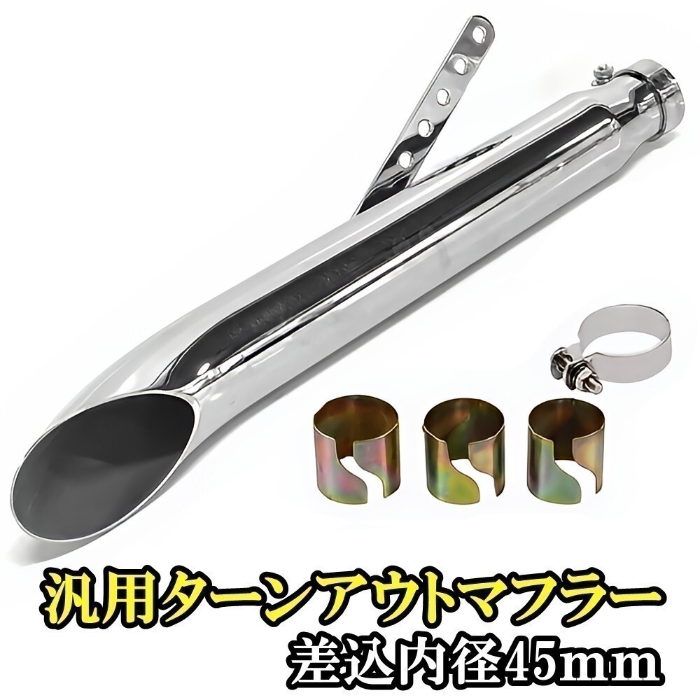 > 新品即決 バイク 汎用 ターンアウト スリップオン マフラー メッキ 銀 イントルーダー400 バルカンドリフター SR400 エストレヤ
