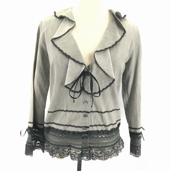 > 日本製★INGEBORG★コットン/ジャケット【S/グレー】フリル/レース装飾/ゴシック/インゲボルグ/Made in Japan◆BC344