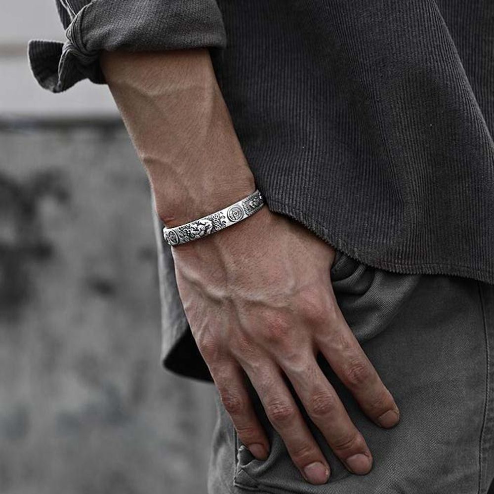 - メンズ バングル カフブレスレット シルバー ヴィンテージ風 中国 レトロ ゴツい