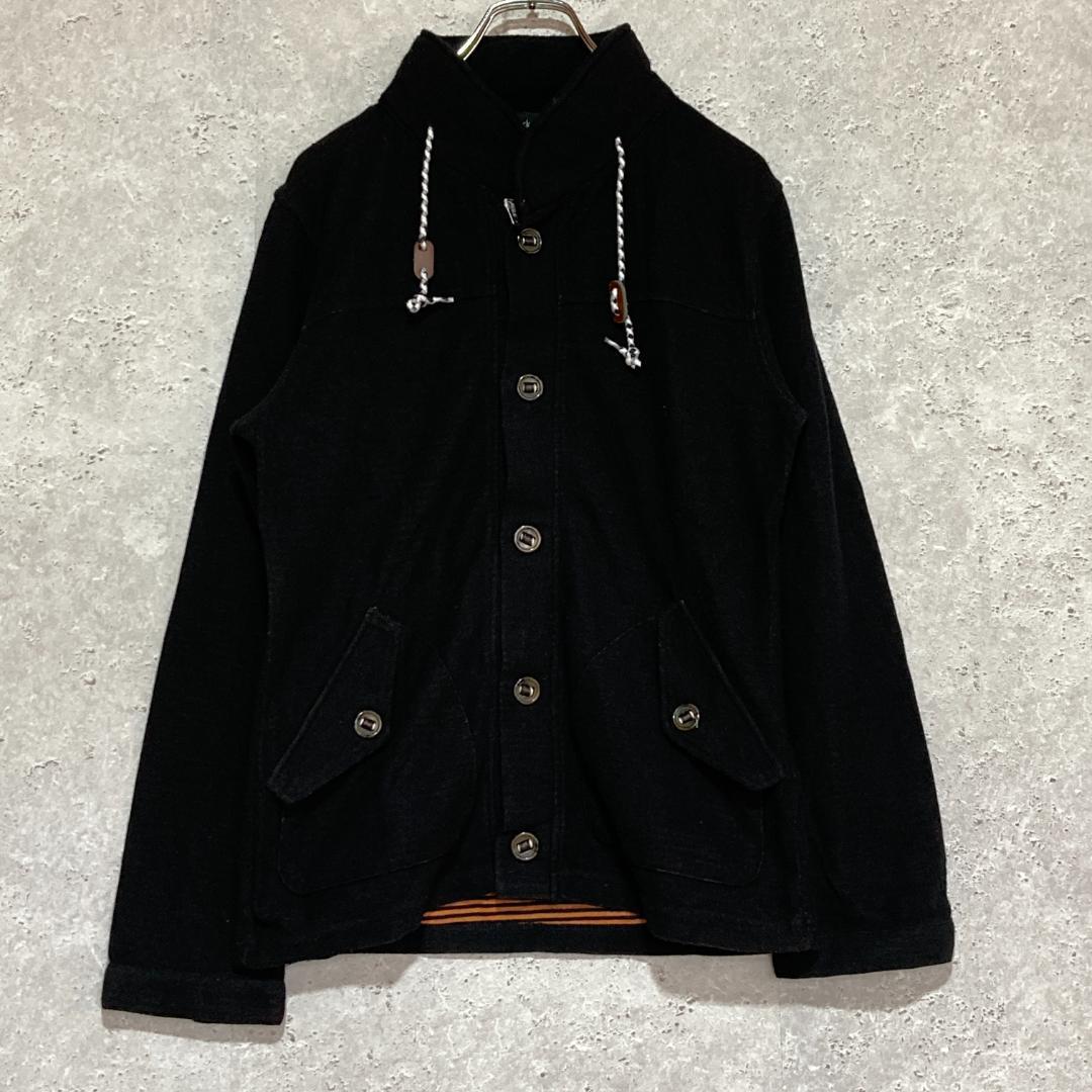 - famock(M)中綿コート*裏地ボーダー*ジャケット*フラップポケット*黒