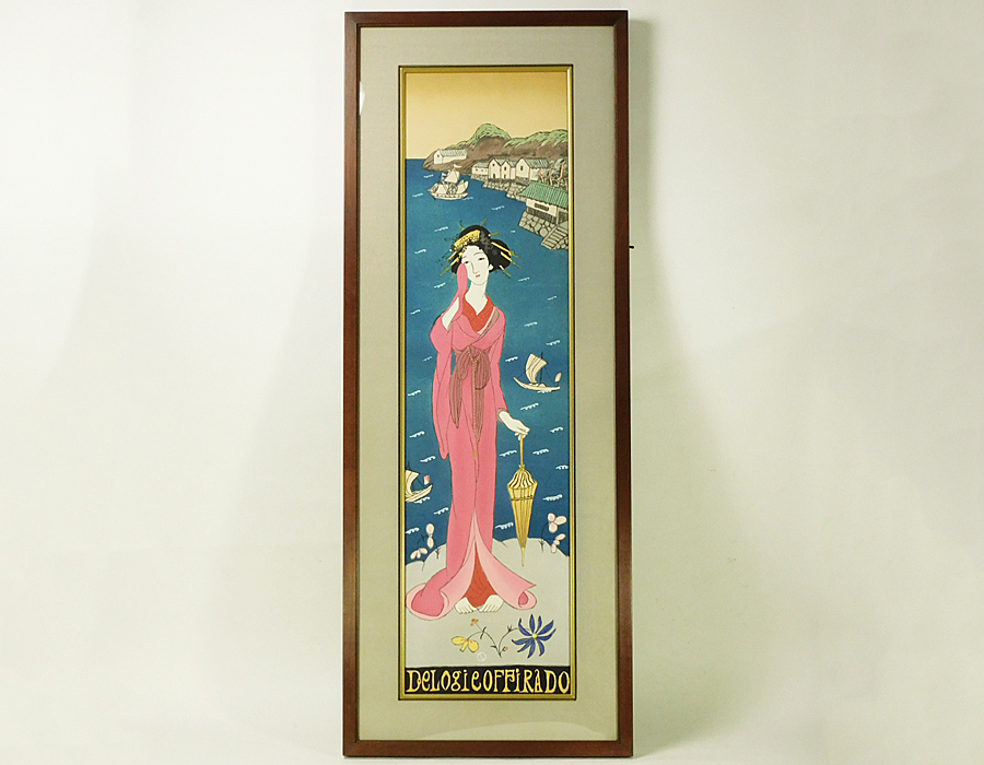 - 竹久夢二 平戸懐古 美人画 木版画 額装(共シール)彫・摺 松永安生 黒猫屋版 限定50部(専用箱 黄袋)長期保管品n25090701
