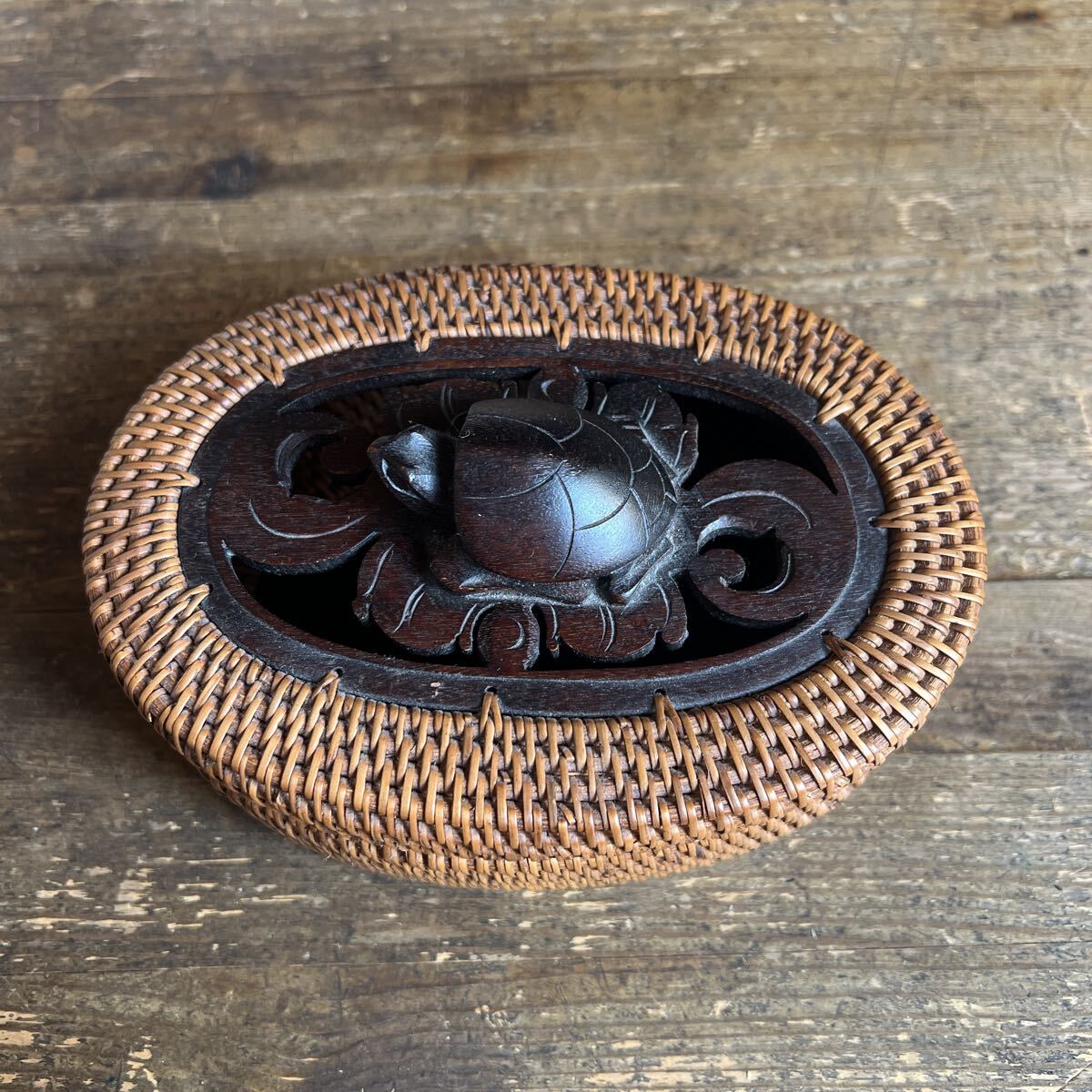 - T9-3-10 亀が付いた小箱 カゴ BOX 小物入れ 約16×11×高さ7㎝