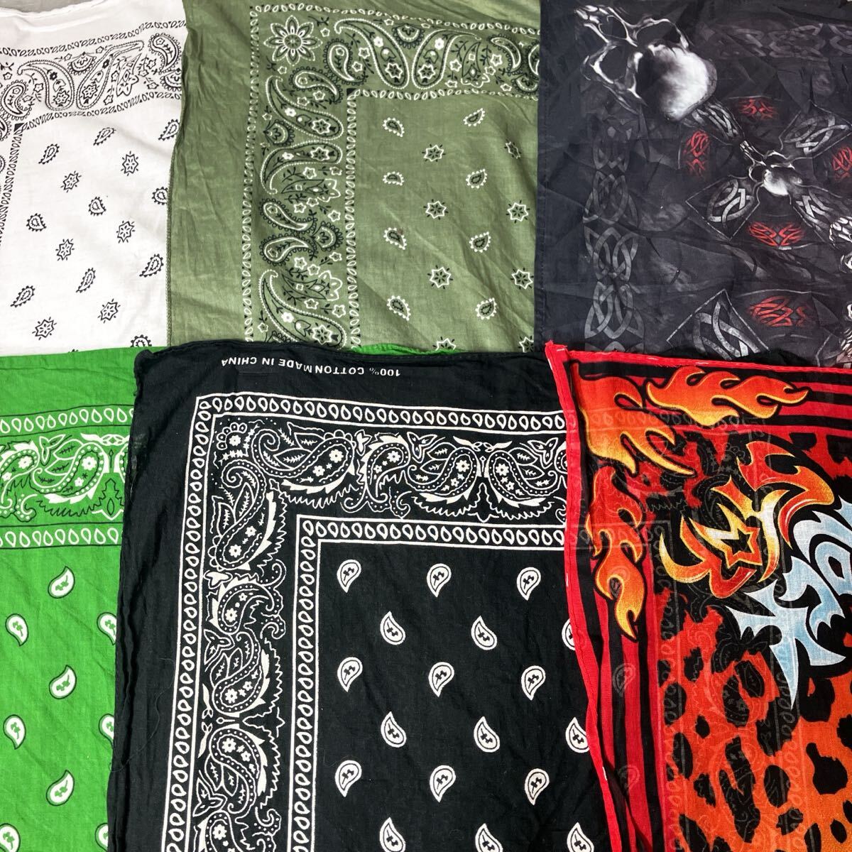 - バンダナ 6枚セット ペイズリー カラーmix 黒ブラック グリーン緑 白ホワイト US古着 小物 アクセント 00s〜 格安セットアソート ドクロ