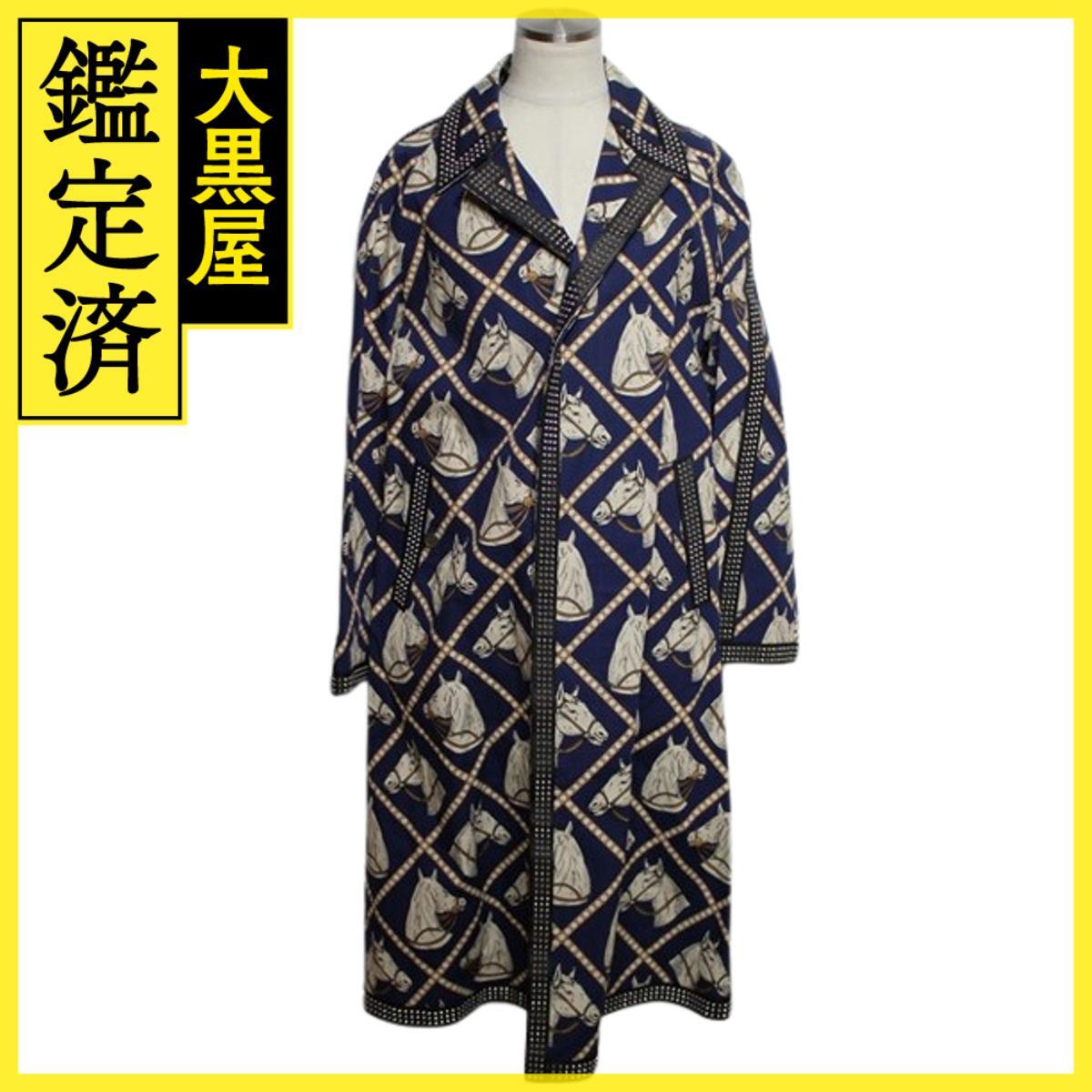 > GUCCI グッチ スタッズロングコート メンズ46 ネイビー/ホワイト/ブラック コットン 716220Z8A6L 2143000712721