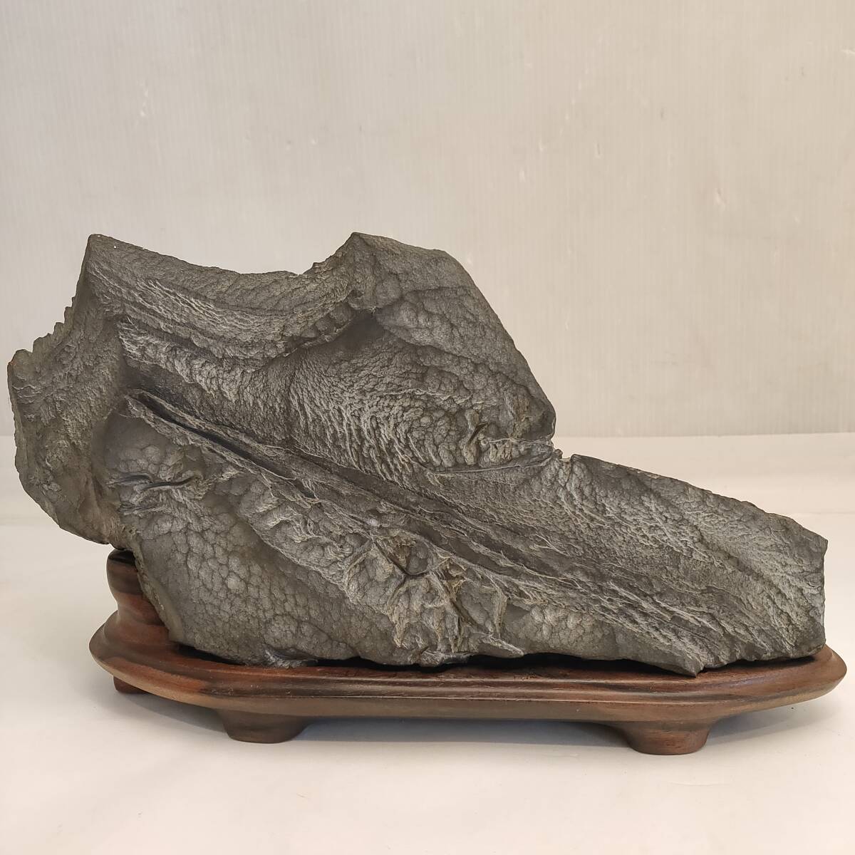 - 090705●台座付 鑑賞石 横幅約26㎝×奥行約4㎝×高さ約12㎝●