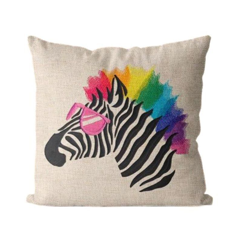 > しまうま ゼブラ 白 ベージュ クッションカバー 45×45cm おしゃれ 派手 インテリア 正方形 麻生地 リネン 1枚【color 13】