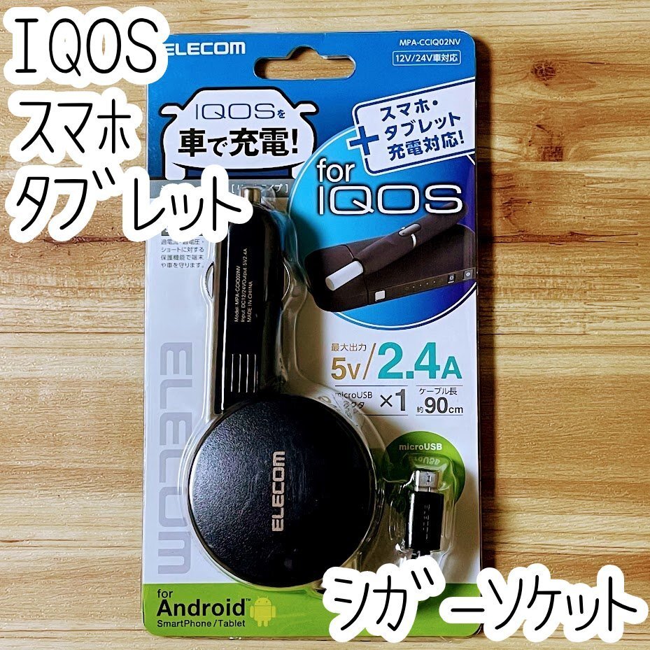 - エレコム iQOS スマホ タブレット シガーソケット 充電器 microUSB(Type-B)車 約90cmのケーブル チャージャー 875