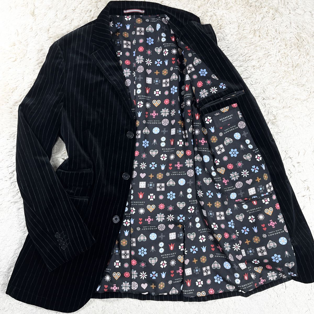 > 未使用級/奇跡のLL!! バーバリーブラックレーベル 希少 モノグラム ベロア テーラードジャケット ストライプ BURBERRY BLACK LABEL XL