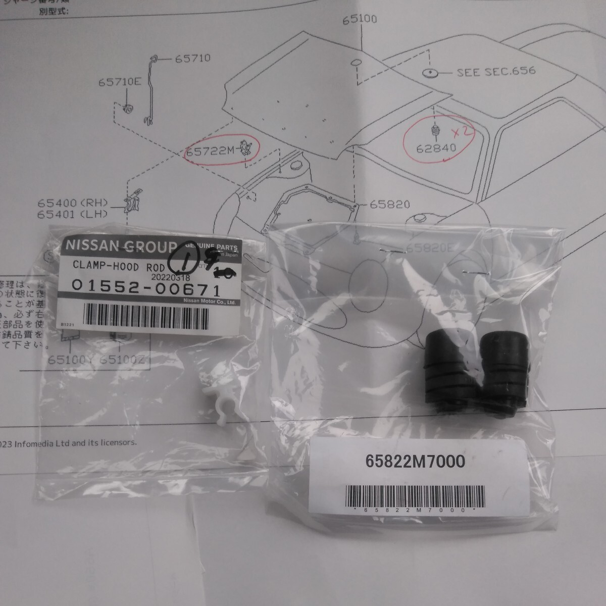 - ★即決 未使用品 日産フィガロFK10 ボンネットクッション2個 フードロッドクランプ1個 純正品⑨